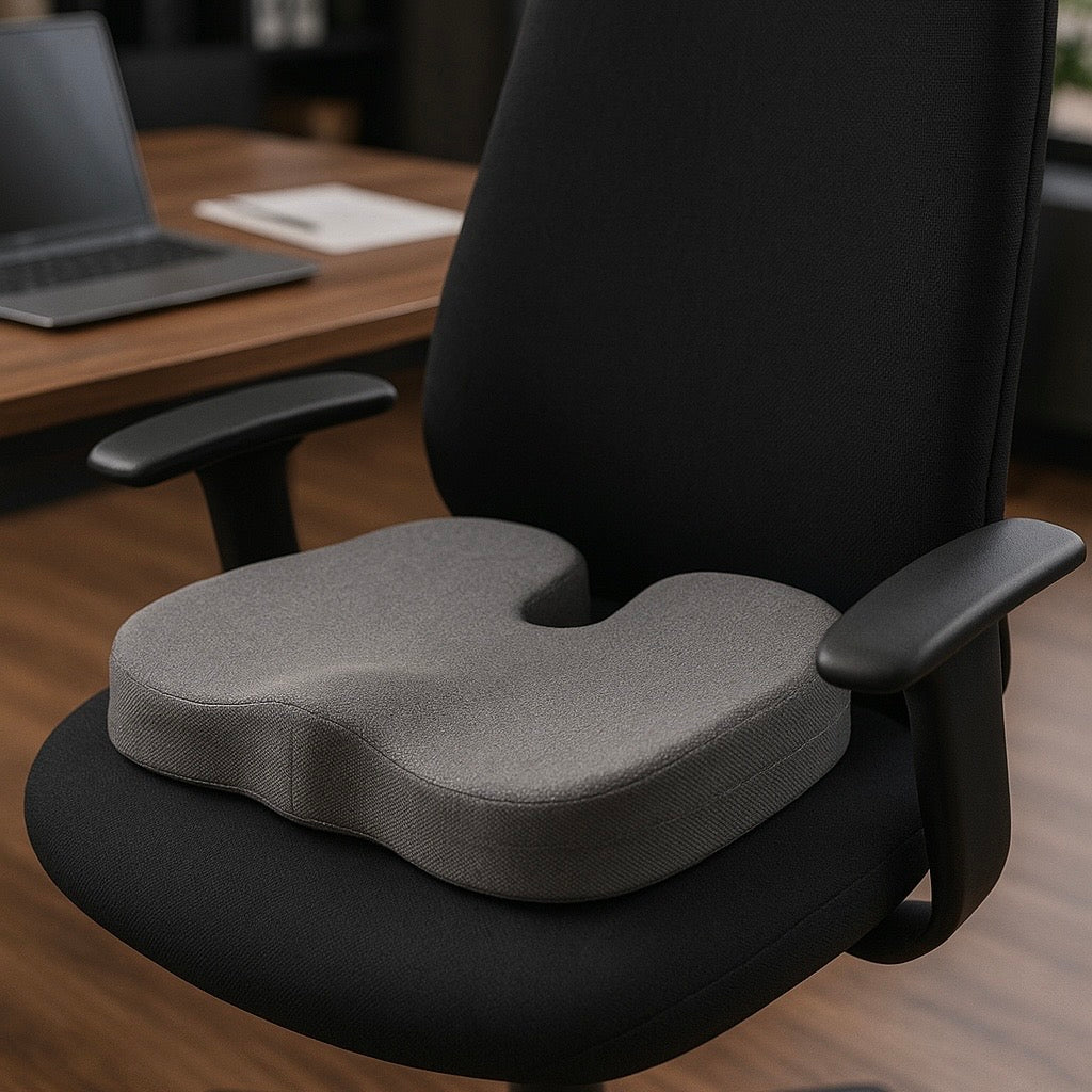 تتكيف مع شكل الجسم وتوزع الوزن بشكل متوازن لتقليل الضغط على العمود الفقري وتوفير راحة أثناء الجلوس لفترات طويلة.